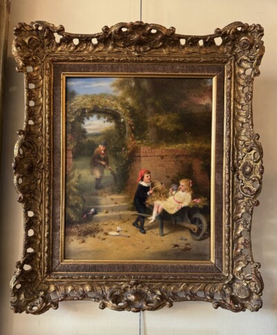 Irish Oil Painting on Wood Panel – “The Young Gardeners” by G. B. O’Neill – dated 1897 – Richard Green Fine Arts Label