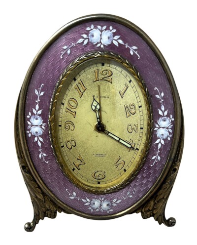 A Gübelin Swiss Desk/Travel Clock Guilloché Enamelled Silver .935 with Alarm