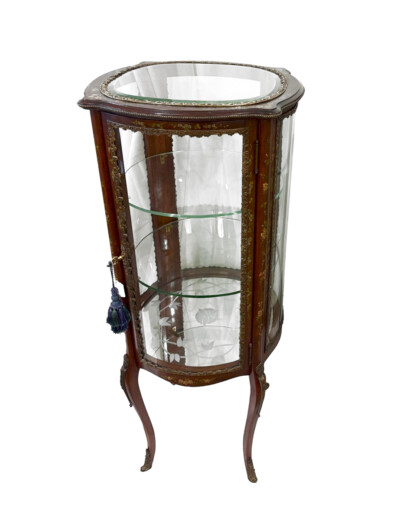 Antique French Hand Painted Round Bowed Glass Curio Display Cabinet, Circa 1910