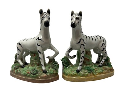 Antique Pair of Adorable Hand painted Staffordshire Pottery Zebras – circa 1860