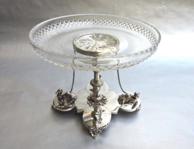 Mappin Brothers – English Silver-plated & Crystal Tazza with Egyptian Revival Camel Decoration. circa 1870