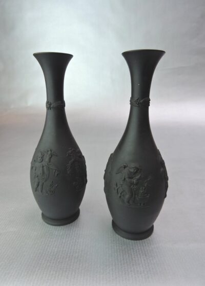 Pair of 19th Century Wedgwood Black Basalt Bud Vases