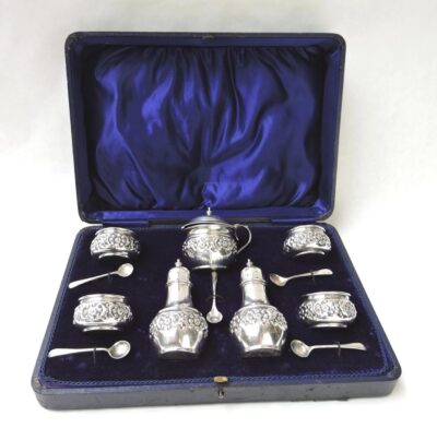 12 Piece English Hallmarked Sterling Condiment Set in Fitted Box – Birmingham 1913