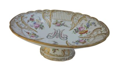 Large 19th Century Dresden Style – Marie Antoinette Monogrammed Pedestal Serving Dish – Leboeuf Paris (Dresden style)