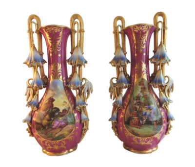 Pair of Large Paris Porcelain Vases with Hand Painted African Tribal Scenes – circa 1850