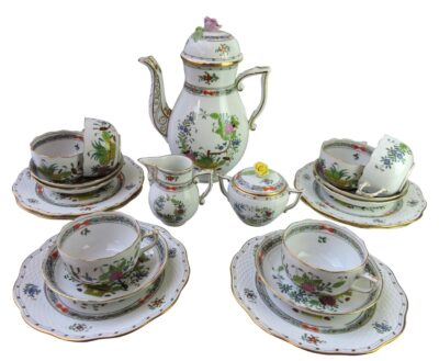 Herend Indian Basket – Multi Colour – 21 Piece Coffee Set with 6 Trios.
