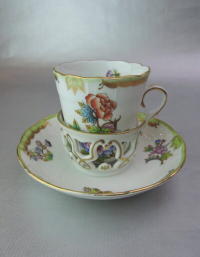 Herend Porcelain “Queen Victoria” Pattern – “Trembleuse” Cup & Saucer
