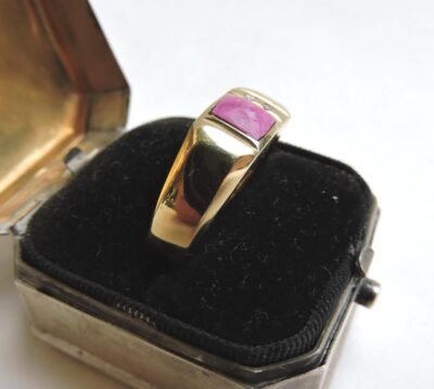 14 karat Gold Ring with Pink Square Stone & 2 Small Diamonds
