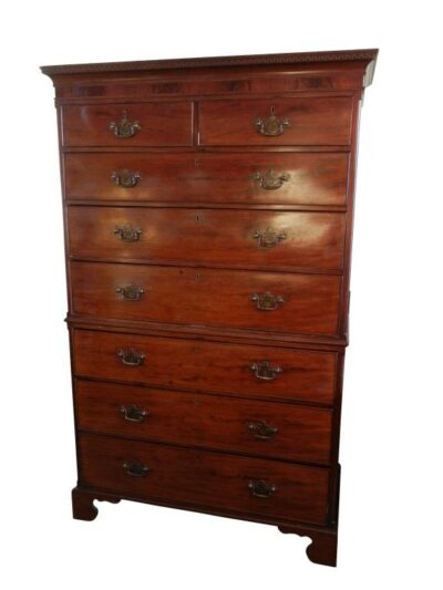 Large English Georgian Period Chest on Chest (Highboy) – Mahogany, circa 1800.