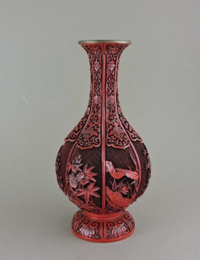 Late 19th Century Chinese Hand-Carved Red Lacquer Vase