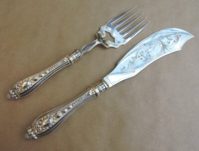Pair of Sterling Fish Servers – English Hallmarked with Silverplated Blades – Victorian circa 1885