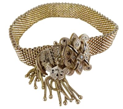 Late Victorian 9k Gold and Diamond Flex Chain Bracelet.