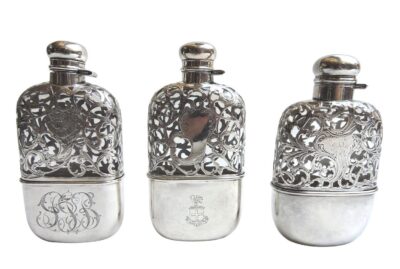 American Silver Overlay Hip Flask with Removable Bottom Cups – Alvin Mfg. Co & J.E. Caldwell – circa 1900