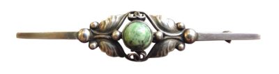 George Jensen Denmark – Vintage Sterling Bar Pin with Green Agate Stone – #224B.