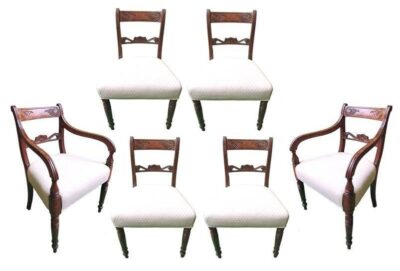 Set of 6 English Georgian Dining Room Chairs – 2 Arm Chairs / 4 Side Chairs, circa 1820