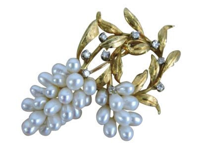 Early 20th Century – 18kt Yellow Gold, Pearl & Diamond Brooch/Pin