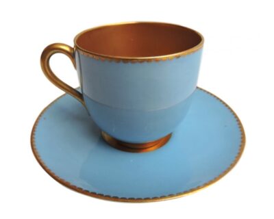Royal Worcester – Powder Blue & Gold Interior & Rims – Demi-tasse Cup & Saucer – dated 1912.