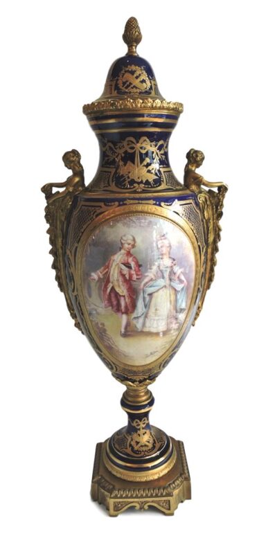 Large 28 inch French Sevres ‘Chateau des Tuileries’ Porcelain Ormolu Vase – Artist Signed – C.1860
