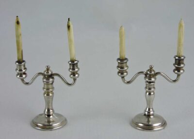 Pair of MINIATURE English Sterling Candelabras. Birmingham. Dated 1940.