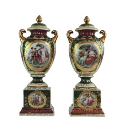 Pair of Austrian, Vienna Medium Covered Urns, circa 1900. 13 inches high.