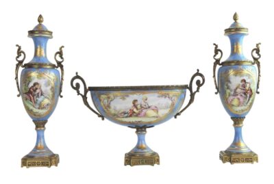 19th Century- ‘Sevres’ Style Porcelain Garniture Set with Hand Painted Classical Scenes – Artist Signed.