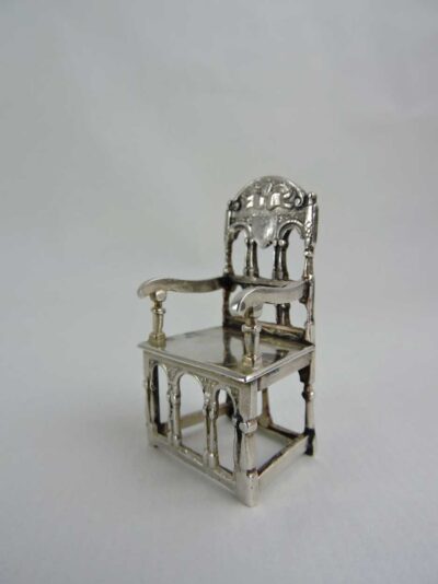 Miniature English Sterling Hallmarked Throne Chair – Birmingham. Dated 1947.