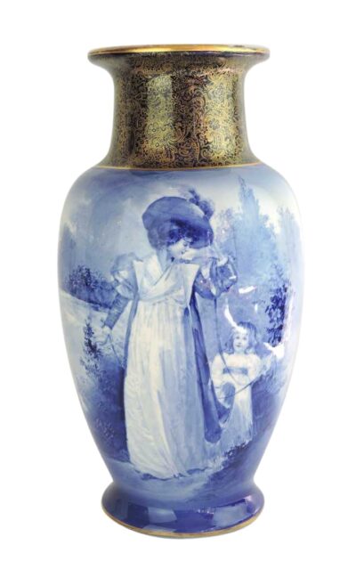 Large Royal Doulton Vase in “Blue Children” Series- ‘Mother and Daughter in Garden’ Scene – C.1900