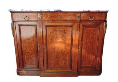 French Parquetry & Inlaid With Marble Top Buffet Server. c.1900