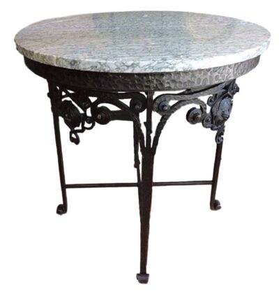 French Paris Art Deco Wrought Iron Round Marble Top Side Table – Possibly Louis Katona