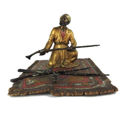 Austrian Cold Painted Bronze/ Orientalist Ottoman Figurine. Arab on Carpet with Rifles. c.1900