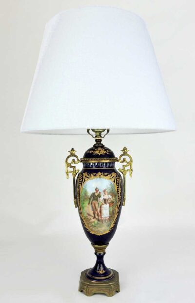 Early 20th Century – French Table Lamp With Hand-Painted Figural Scene and Decoration