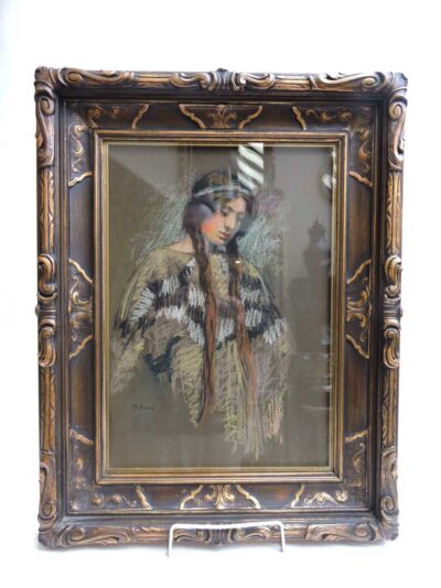 A Portrait of A Native American Girl – Pastel on Paper. Signed Hugo Robus – American Artist.