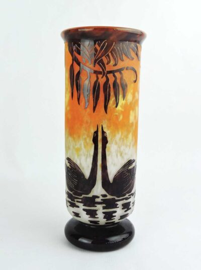 Le Verre Francais – Art Deco French Cameo Glass Vase with Swans by Schneider, circa 1920’s