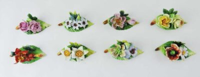 Set of 8 – Dresden Porcelain Place Card Holders With Leaf And Flower