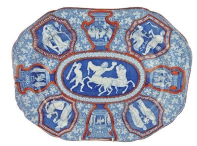 Early Spode Large Greek Ware Platter in Blue, White and Rust.