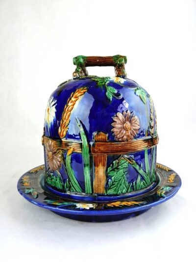 Early 20th Century – Majolica Cheese Dome – Fence & Daisy /Wheat & Daisy Reproduction