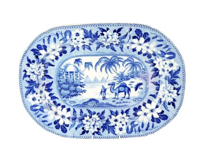 Large English Blue Transfer Platter with Egyptian Scene – 19th Century.