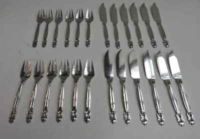 Georg Jensen Sterling Fish Knives & Forks – Set for 12 in Acorn Pattern – Solid Sterling Blades