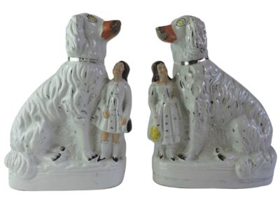Large Pair of Staffordshire Hand-Painted Dogs With Figures. Circa 1860.