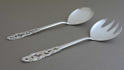 Norwegian Hallmarked Sterling Salad Server Set in ‘Tele’ Pattern. Maker: Mylius Brodrene