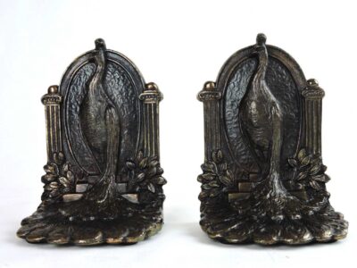 Pair of Ornate Peacock Bookends – Heavy Cast Bronze Colour