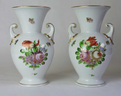 Pair of Herend Porcelain Vases With Hand-Painted Flower Pattern
