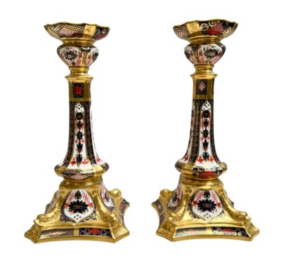Pair of Royal Crown Derby Candlesticks “Old Imari” Pattern #1128