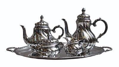 Circa 1900 German 925 Sterling Silver Marked “Handarbeit” Tea Set & Large Tray