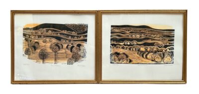 Pair of Linocut Prints “Downs and Trees” by English Printmaker Robert Travener