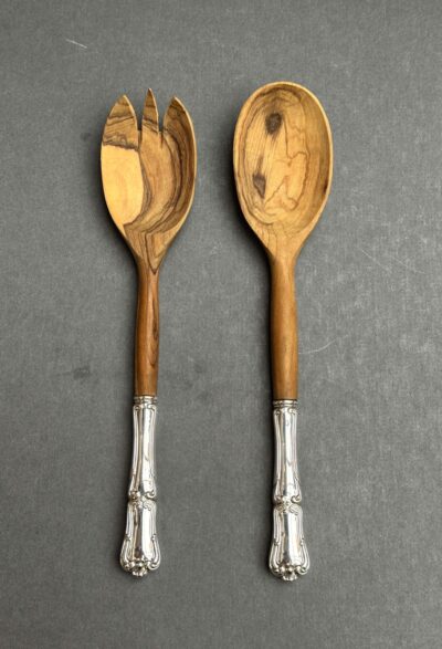 Set of Exotic Wood & Sterling Silver Salad Servers – ‘Francis I’ Pattern by Birks