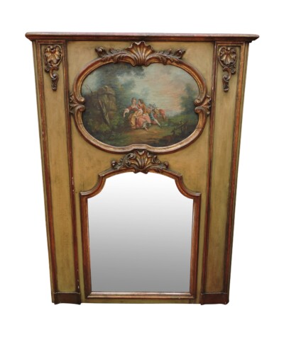 19th century French Trumeau Mirror with Painted Oil on Canvas – “French Courting Scene” – 56 inches high