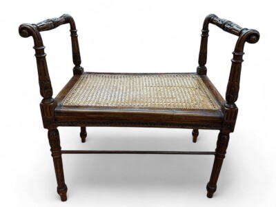 Gorgeous French Elaborately Carved Walnut Bench with Cane Seating, Late 19th Century