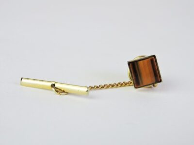 Vintage Tie Tack – Genuine Tiger Eye Stone With Gold Tone