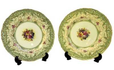 Pair of Hand Painted Royal Worcester Plates with Floral Centers